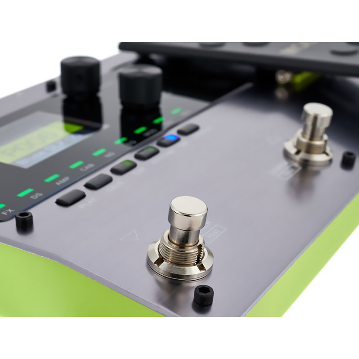 Педаль эффектов легко подключается к вашей гитаре с помощью входов Mini-jack и Jack (6.3). Питание осуществляется от источника DC 9V с потреблением всего 300 мА, что делает ее энергоэффективной и удобной в использовании. Два разъема USB позволяют подключить устройство к компьютеру для записи или синхронизации с другими аппаратами.
